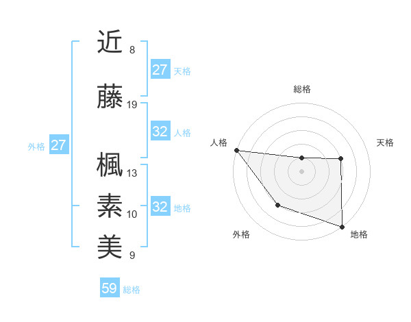 近藤 楓素美さんを姓名の画数から五運を鑑定