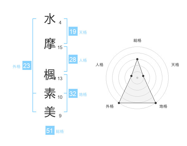 水摩 楓素美さんの総格は51画の3点!