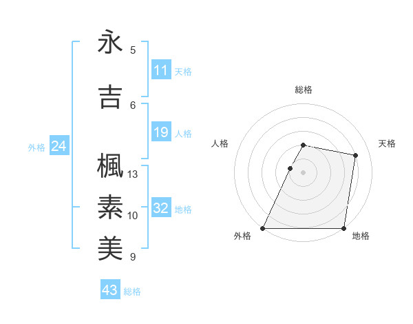 永吉 楓素美さんの総格は43画の2点!