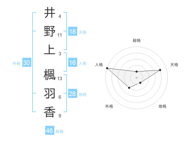 井野上 楓羽香さんを姓名の画数から五運を鑑定