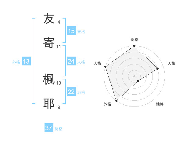 友寄 楓耶さんを姓名の画数から五運を鑑定