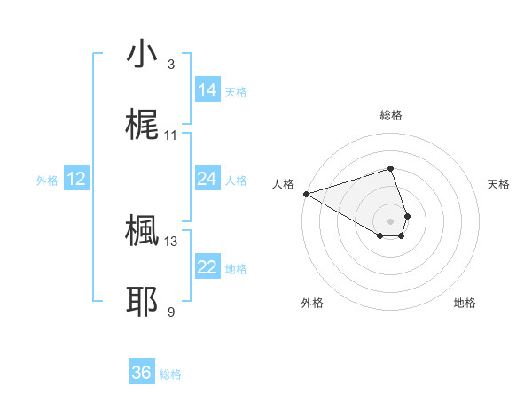 小梶 楓耶さんを姓名の画数から五運を鑑定