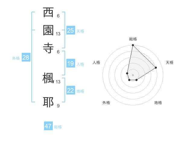 西園寺 楓耶さんの総格は47画の5点!