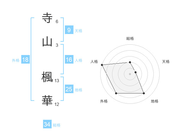 寺山 楓華さんの総格は34画の2点!