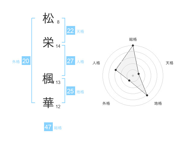 松栄 楓華さんの総格は47画の5点!