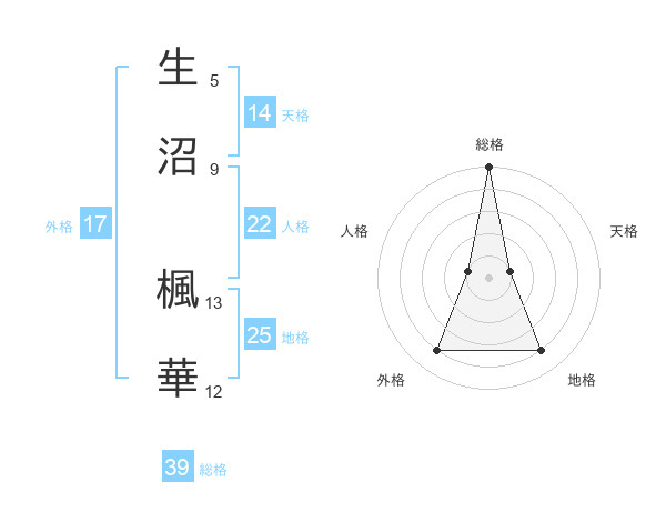 生沼 楓華さんを姓名の画数から五運を鑑定