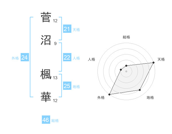 菅沼 楓華さんを姓名の画数から五運を鑑定