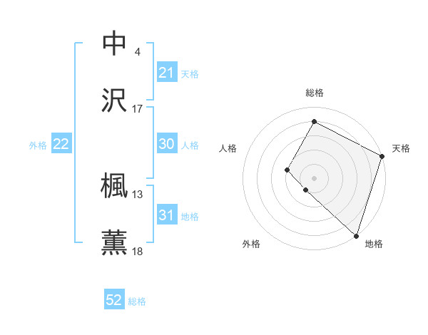 中沢 楓薫さんを姓名の画数から五運を鑑定