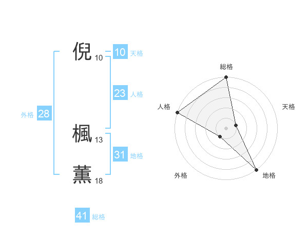 倪 楓薫さんを姓名の画数から五運を鑑定