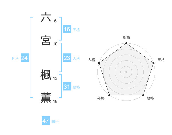 六宮 楓薫さんの総格は47画の5点!