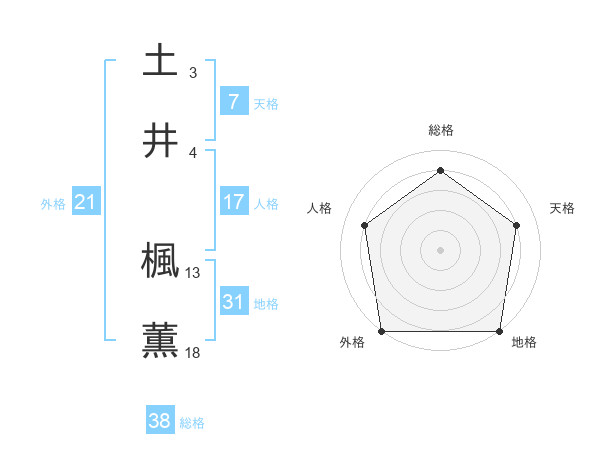 土井 楓薫さんを姓名の画数から五運を鑑定
