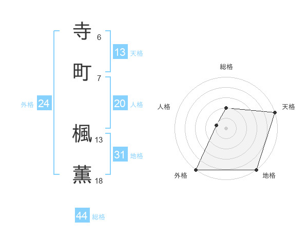 寺町 楓薫さんを姓名の画数から五運を鑑定