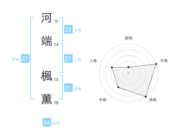 河端 楓薫さんの総格は54画の1点!