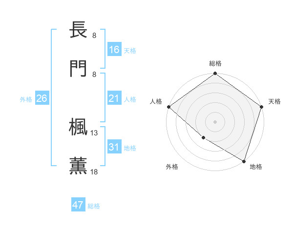 長門 楓薫さんを姓名の画数から五運を鑑定
