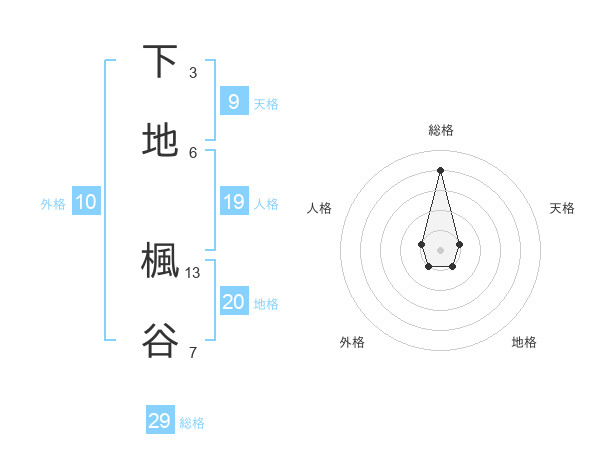 下地 楓谷さんの総格は29画の4点!