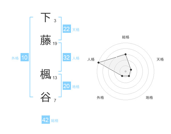 下藤 楓谷さんの総格は42画の3点!