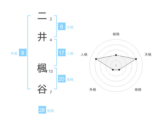 二井 楓谷さんの総格は26画の2点!