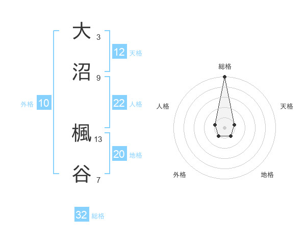 大沼 楓谷さんの総格は32画の5点!