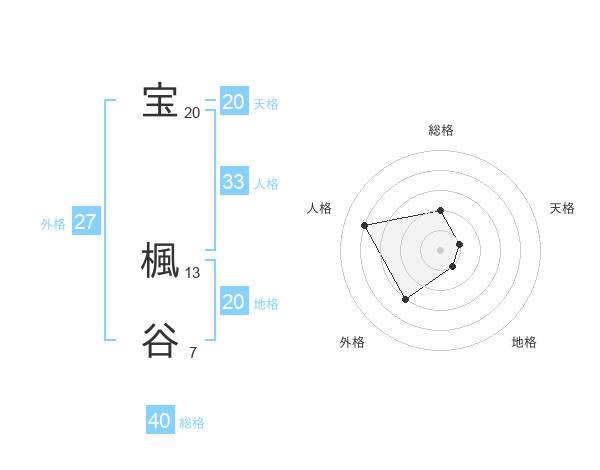 宝 楓谷さんの地格は20画の1点!