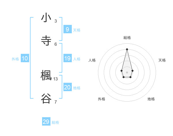 小寺 楓谷さんの総格は29画の4点!