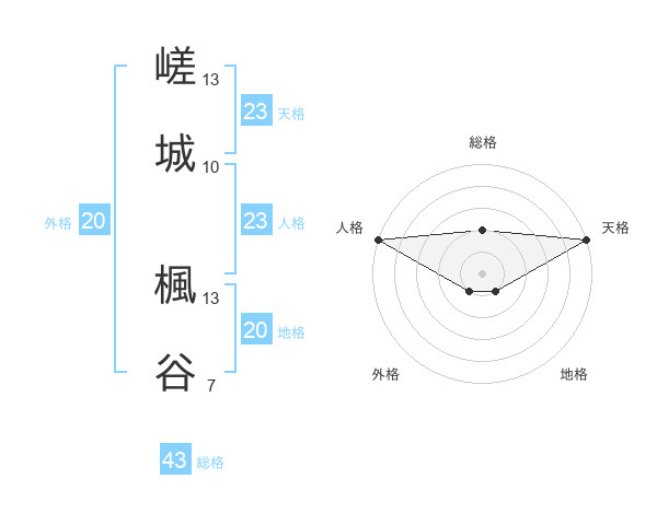 嵯城 楓谷さんを姓名の画数から五運を鑑定