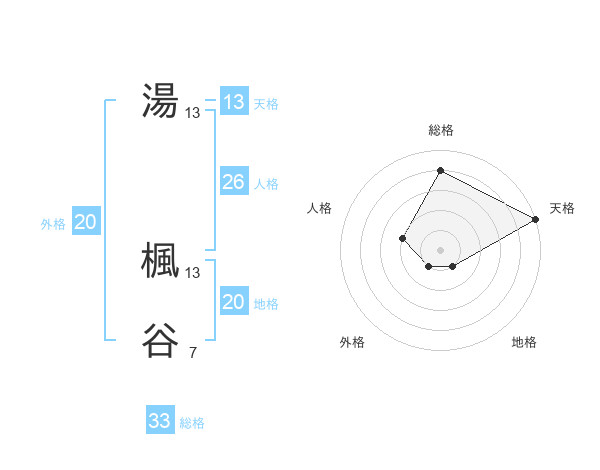 湯 楓谷さんの総格は33画の4点!