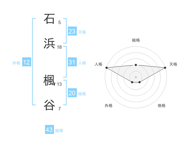 石浜 楓谷さんの総格は43画の2点!