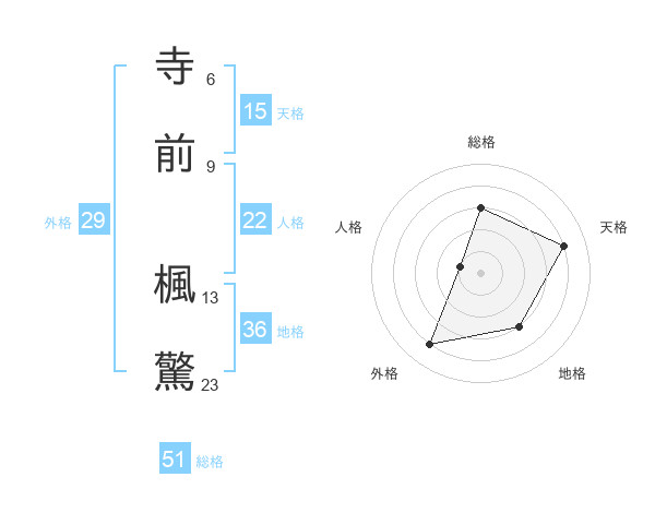 寺前 楓驚さんの総格は51画の3点!