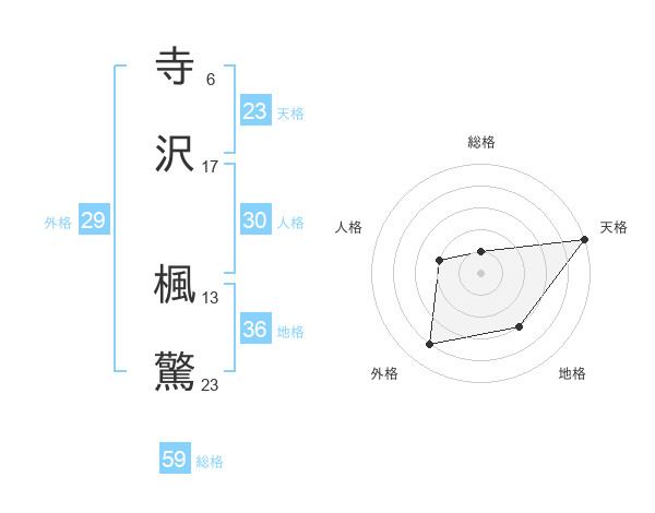 寺沢 楓驚さんの総格は59画の1点!