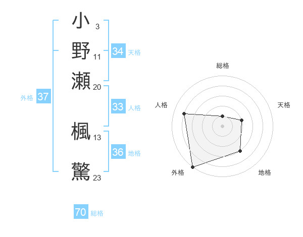 小野瀬 楓驚さんの総格は70画の1点!