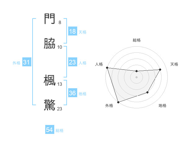 門脇 楓驚さんを姓名の画数から五運を鑑定