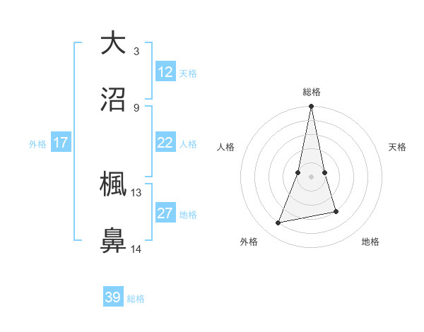 大沼 楓鼻さんを姓名の画数から五運を鑑定