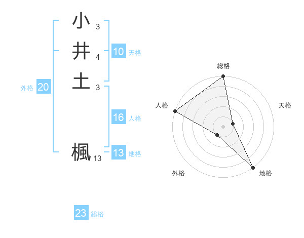 小井土 楓さんの総格は23画の5点!
