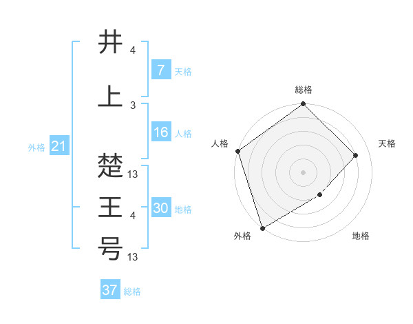 井上 楚王号さんを姓名の画数から五運を鑑定