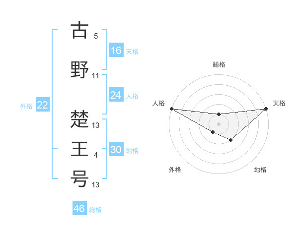 古野 楚王号さんを姓名の画数から五運を鑑定