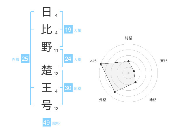 日比野 楚王号さんを姓名の画数から五運を鑑定