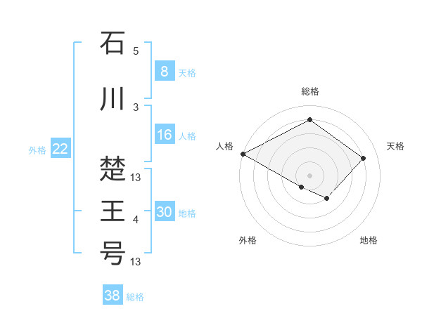 石川 楚王号さんの総格は38画の4点