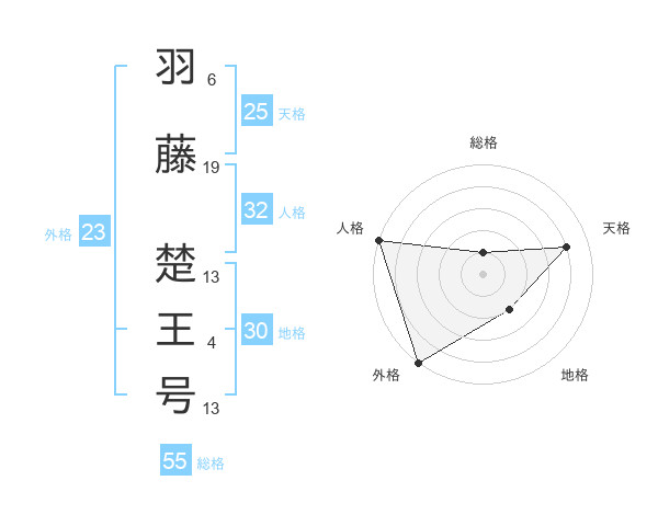 羽藤 楚王号さんを姓名の画数から五運を鑑定
