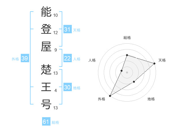 能登屋 楚王号さんを姓名の画数から五運を鑑定