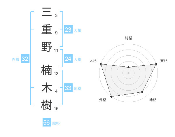三重野 楠木樹さんの外格は32画の5点!