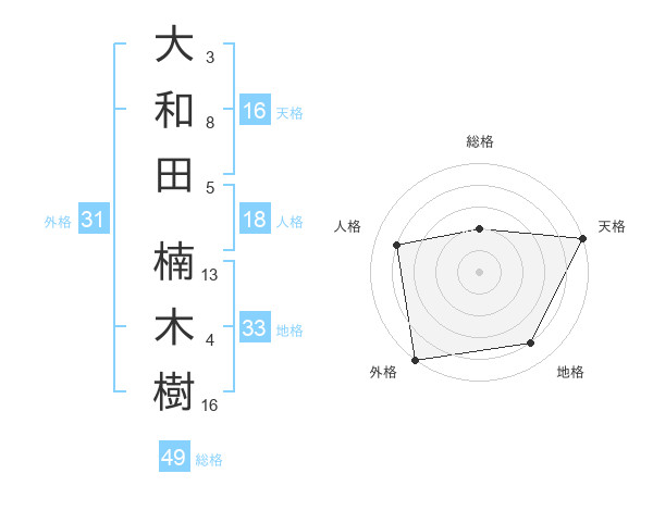 大和田 楠木樹さんを姓名の画数から五運を鑑定