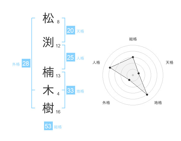 松渕 楠木樹さんを姓名の画数から五運を鑑定