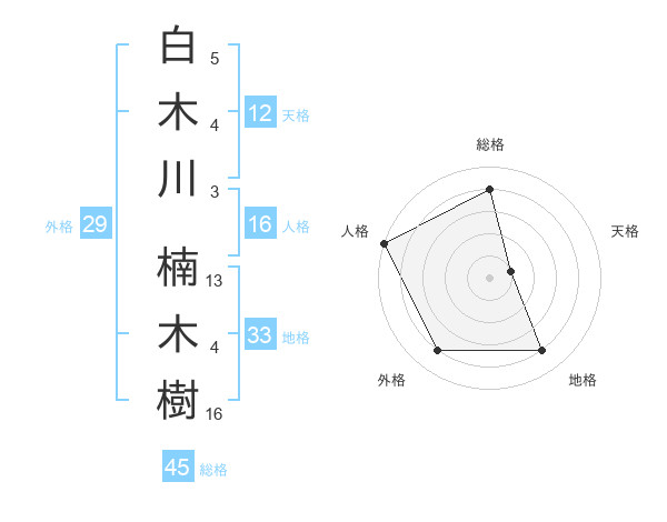 白木川 楠木樹さんの総格は45画の4点!