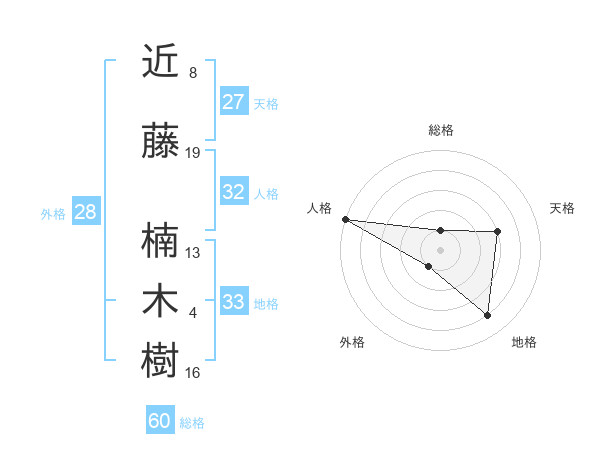 近藤 楠木樹さんを姓名の画数から五運を鑑定