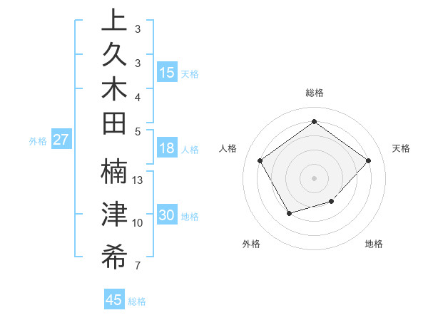 上久木田 楠津希さんを姓名の画数から五運を鑑定