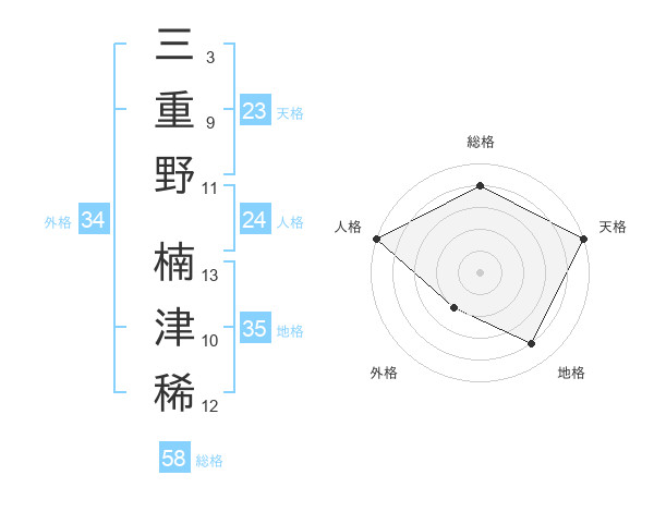 三重野 楠津稀さんを姓名の画数から五運を鑑定