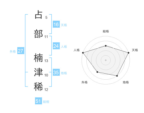 占部 楠津稀さんを姓名の画数から五運を鑑定