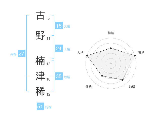 古野 楠津稀さんを姓名の画数から五運を鑑定