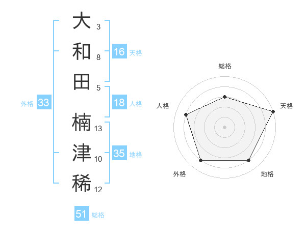 大和田 楠津稀さんを姓名の画数から五運を鑑定