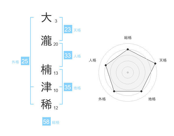 大瀧 楠津稀さんを姓名の画数から五運を鑑定
